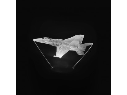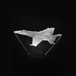 Efectul 3D este format prin iluminarea cu LED-uri multicolore a materialului plexi gravat pe laser.