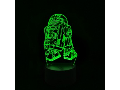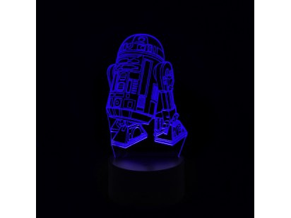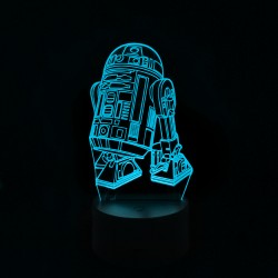 Efectul 3D este format prin iluminarea cu LED-uri multicolore a materialului plexi gravat pe laser.