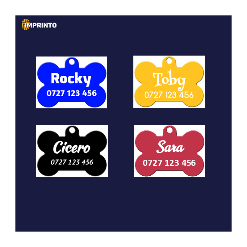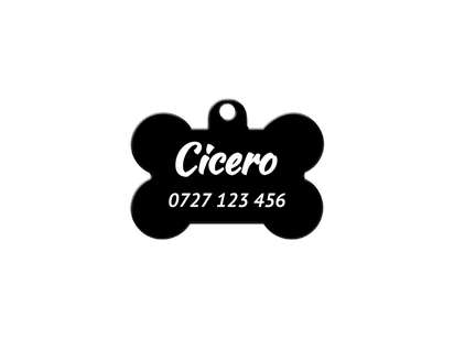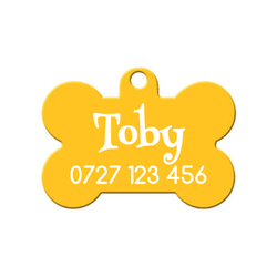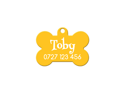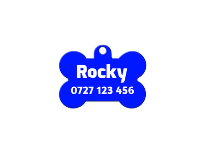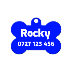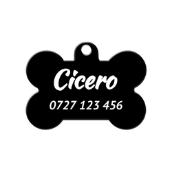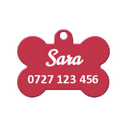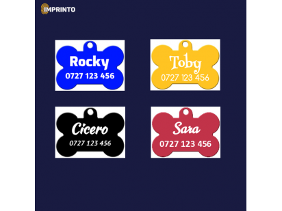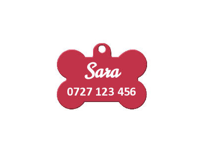 Medalion pentru animale de companie din aluminiu eloxat. Are formă de os.